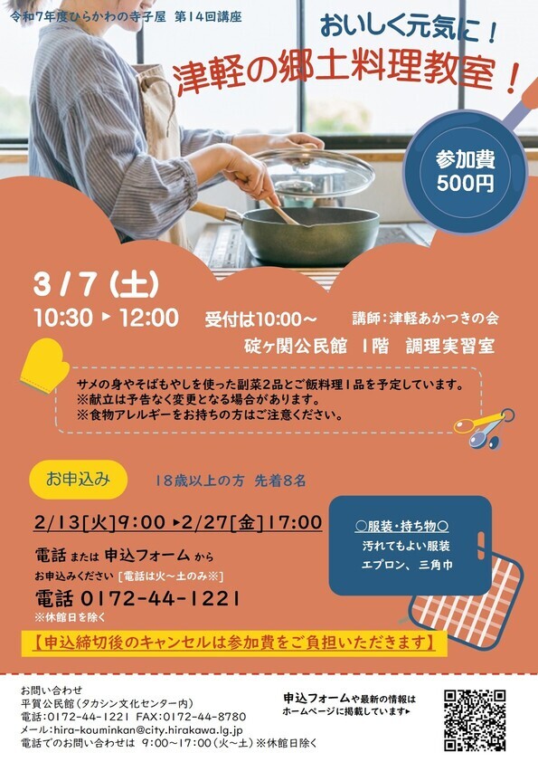 津軽の郷土料理づくりを通して地域の食文化について学びます。