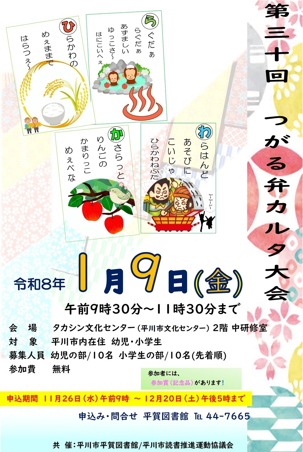 ふるさとの津軽弁を継承していくために、楽しいつがる弁のカルタ大会を開催します。